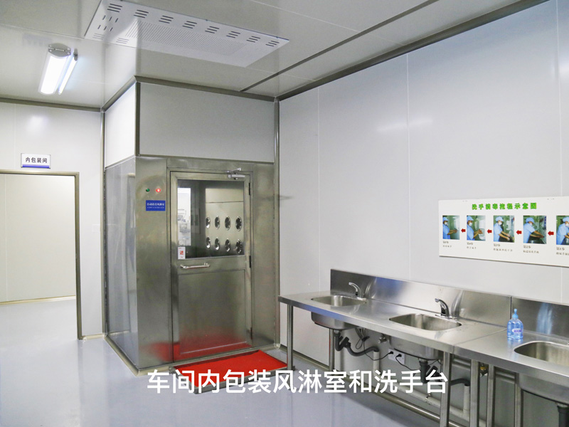 車(chē)間內(nèi)包裝風(fēng)淋室和洗手臺(tái)